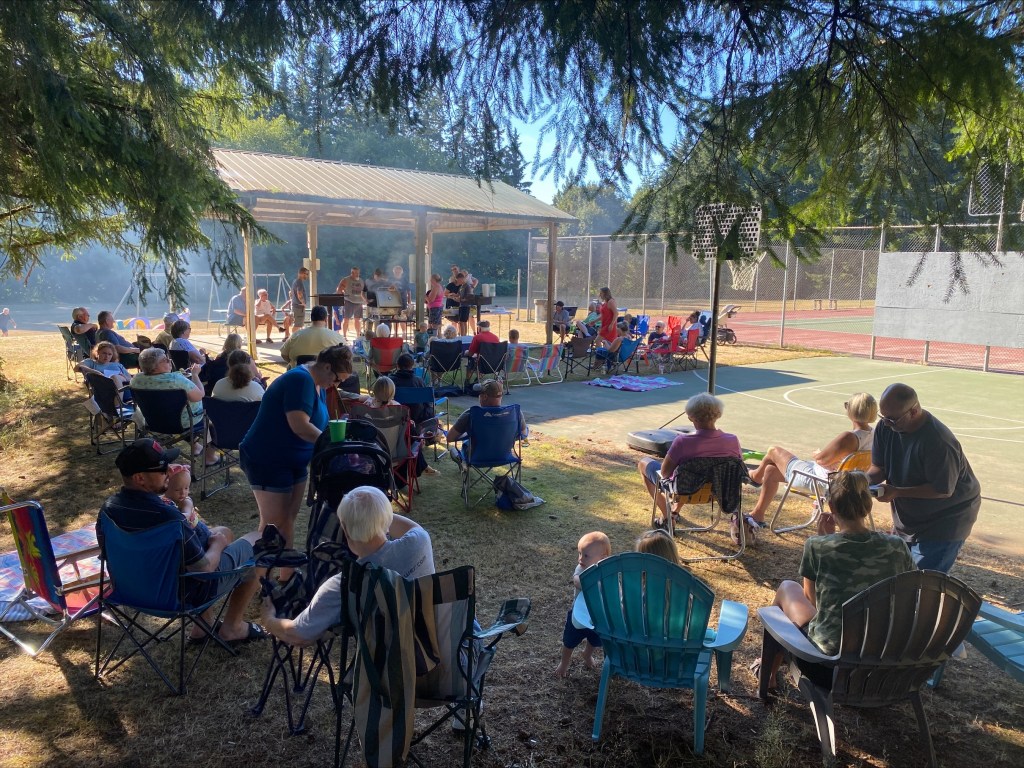 What an amazing turnout for our annual summer barbecue! Huge thanks to John and Cathy Keene for donating the grill and to Josh Thomsen for manning it – also to everyone who brought a side dish and showed up. It was great to meet new neighbors and see returning faces in person! We had 45 adults plus lots of kids playing together in the sunshine.