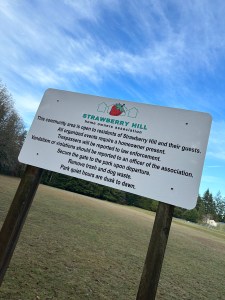 Based on feedback from homeowners at the last meeting, the officers undertook ordering and installing new signage at the neighborhood park. We used a local small business, Ace Signs in Bremerton, and Jim Cole volunteered to install the new signs. They are aluminum and should last a very long time looking great!