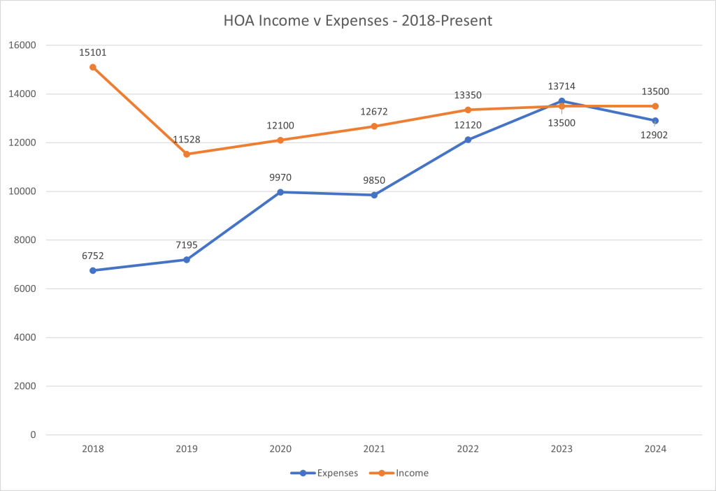 *In 2018, we received a lump payment of unpaid dues with interest with the sale of a home. The normal dues income would have been below $12,000 otherwise.