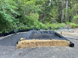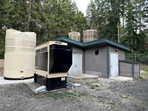 Why does it seem like there is a part near the well that isn’t hooked up yet? That’s true. Part of the new filter process is a backwash water tank that lives outside the filter. The filter vessels trap iron and manganese in their core materials. On a schedule, the filter automatically reverses 10% of the flow of water into the backwater tank for storage so these minerals are flushed out of the filter. Water must be discharged from this backwash tank at intervals. In most systems the water is dumped into a wastewater pond constructed near the tanks. Our system will recycle the water instead, which is the most up-to-date way to conserve resources. The backwash tank was delayed in delivery and is not yet plumbed in. The work for that is scheduled for next week. Meanwhile, the filter system is completely online.
