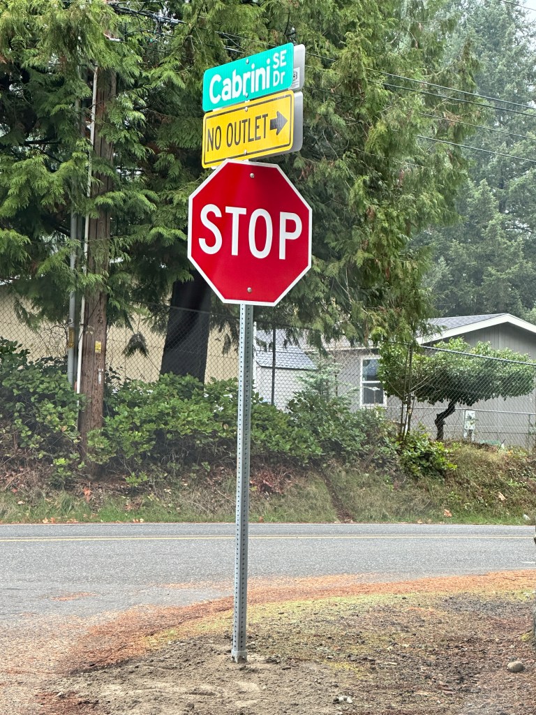 The missing sign was reported to Kitsap County public works on Monday, November 27. The roads department received the request and will update the officers when the work order to replace the sign is complete.