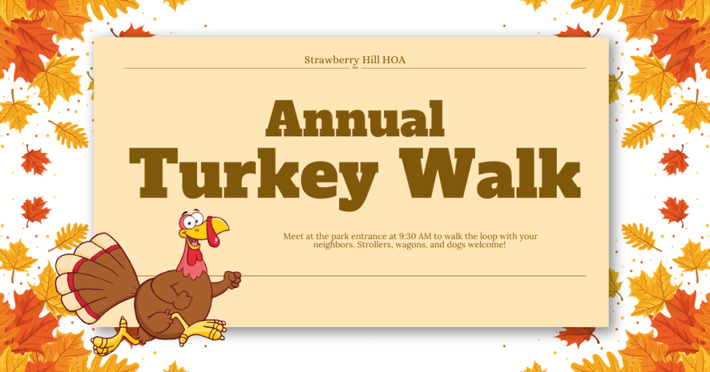 Join us for the annual neighbor Turkey Walk on Thanksgiving morning!