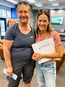 At our July board meeting, the board approved investing just under half of our reserve fund into a CD through Kitsap Bank so we could earn maximum interest on our savings. Today Mary, treasurer, and Becky, president, had an appointment with our banking advisor to open the account for a ten month CD at 4%.