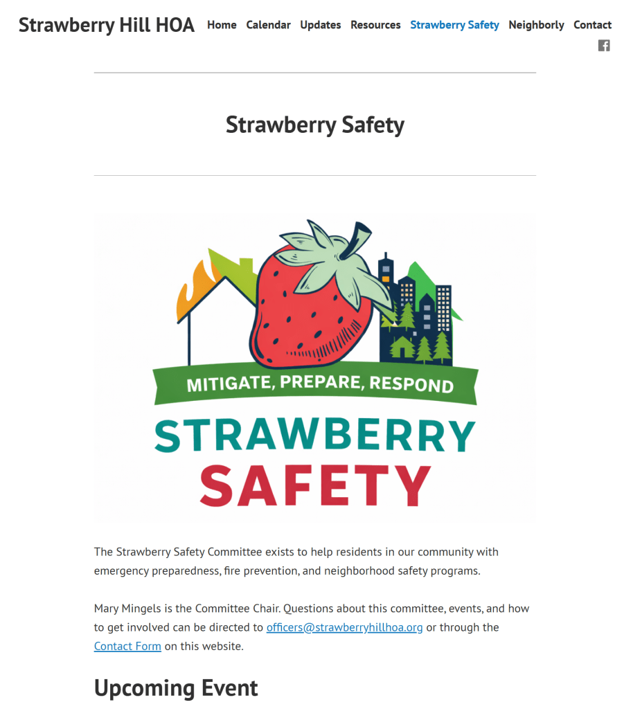 For the latest details about tomorrow’s event, please visit our website. You can access the Strawberry Safety page from the main menu, in between Resources and Neighborly.